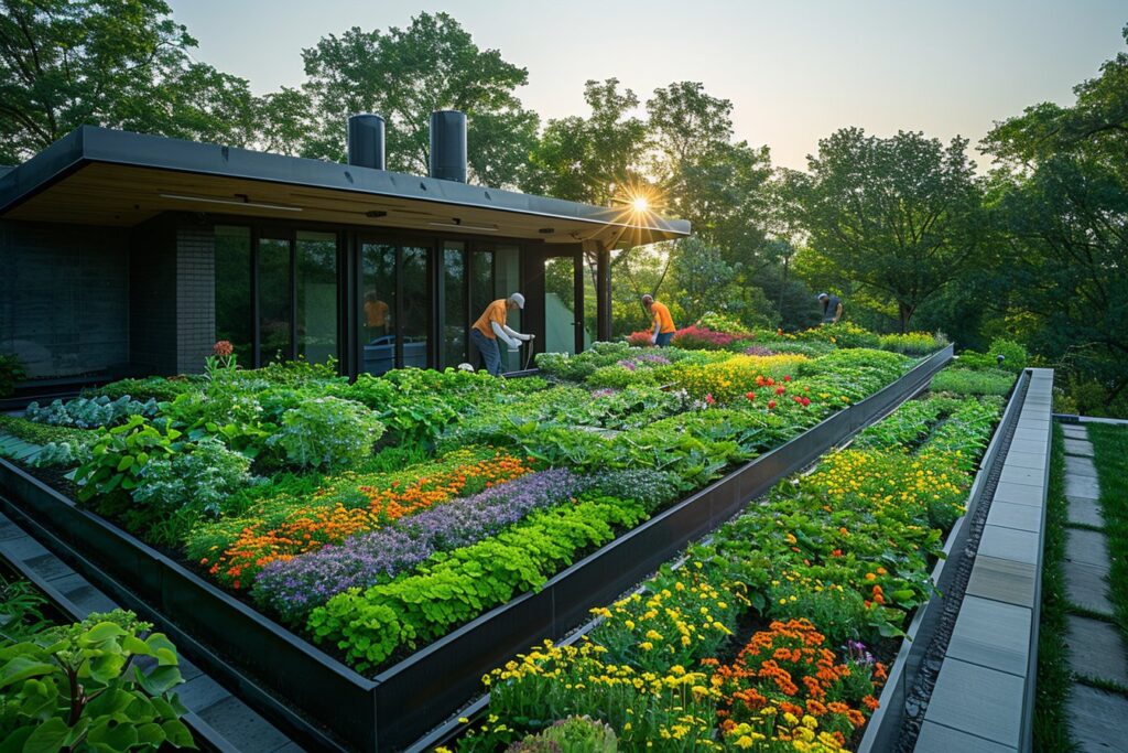 Les toitures intensives sont plus lourdes et permettent de supporter une variété plus large de plantes, incluant des arbustes et même de petits arbres. Ces toitures nécessitent une structure solide et un entretien régulier. Elles transforment véritablement le toit en un jardin accessible.