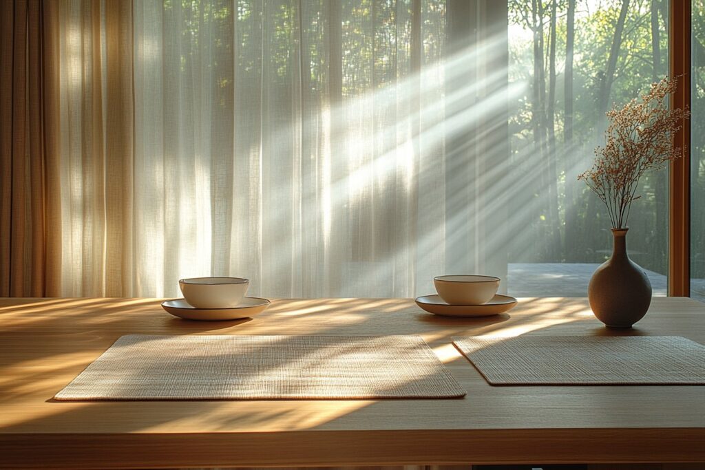 Les sets de table scandinaves sont réputés pour leur minimalisme. Leurs lignes sont simples et épurées, favorisant une atmosphère zen et apaisante. Ce style s’inspire des paysages nordiques, axés sur le bien-être et la simplicité.